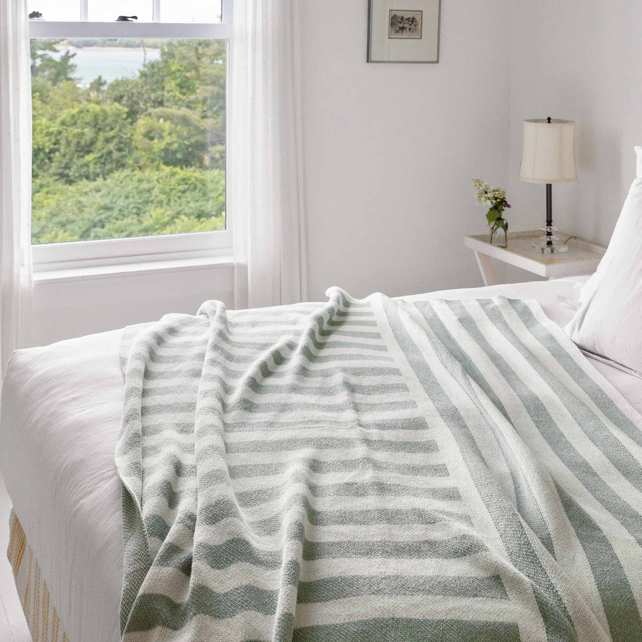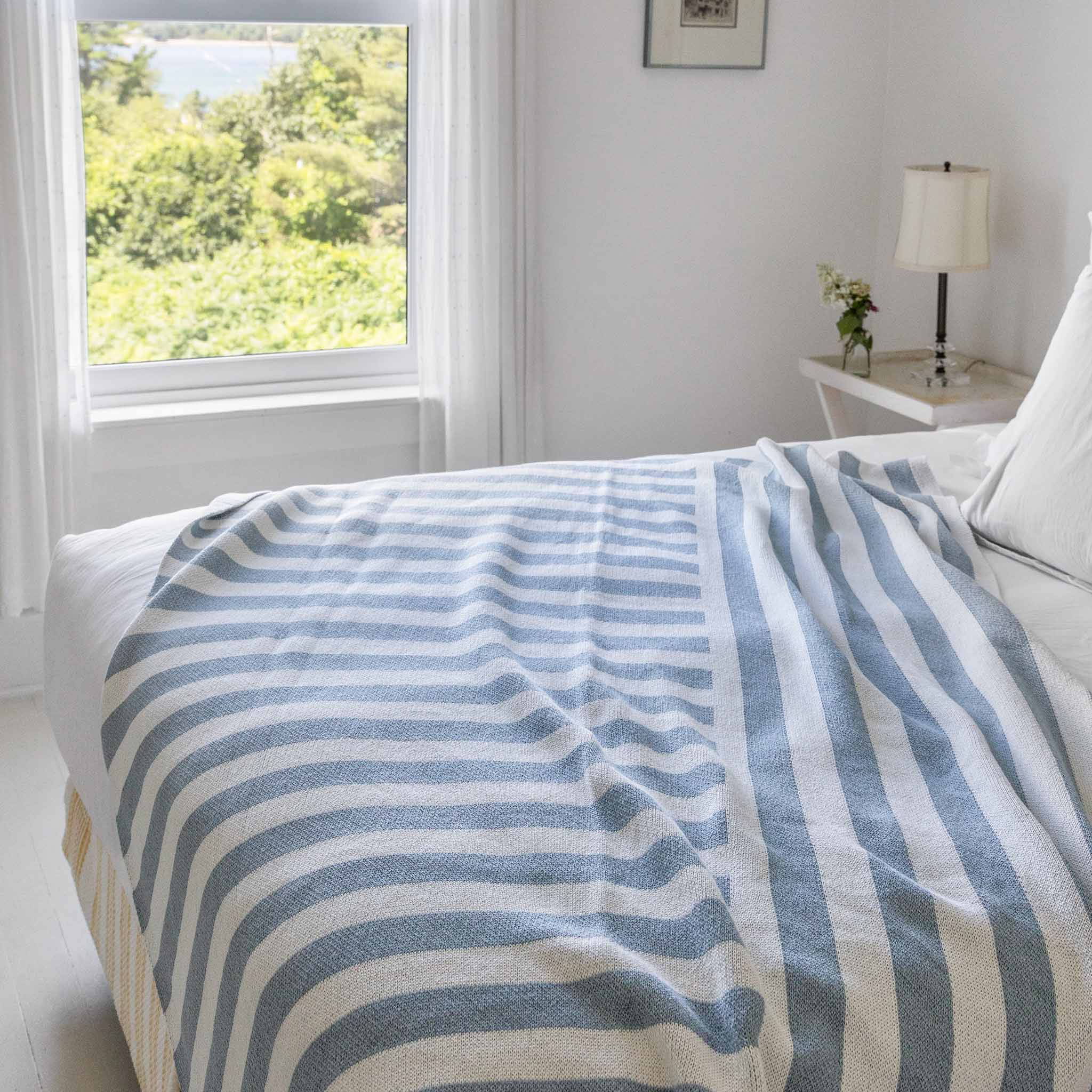Cotton Sustainable Knit Throw Blanket - Coastal Stripes