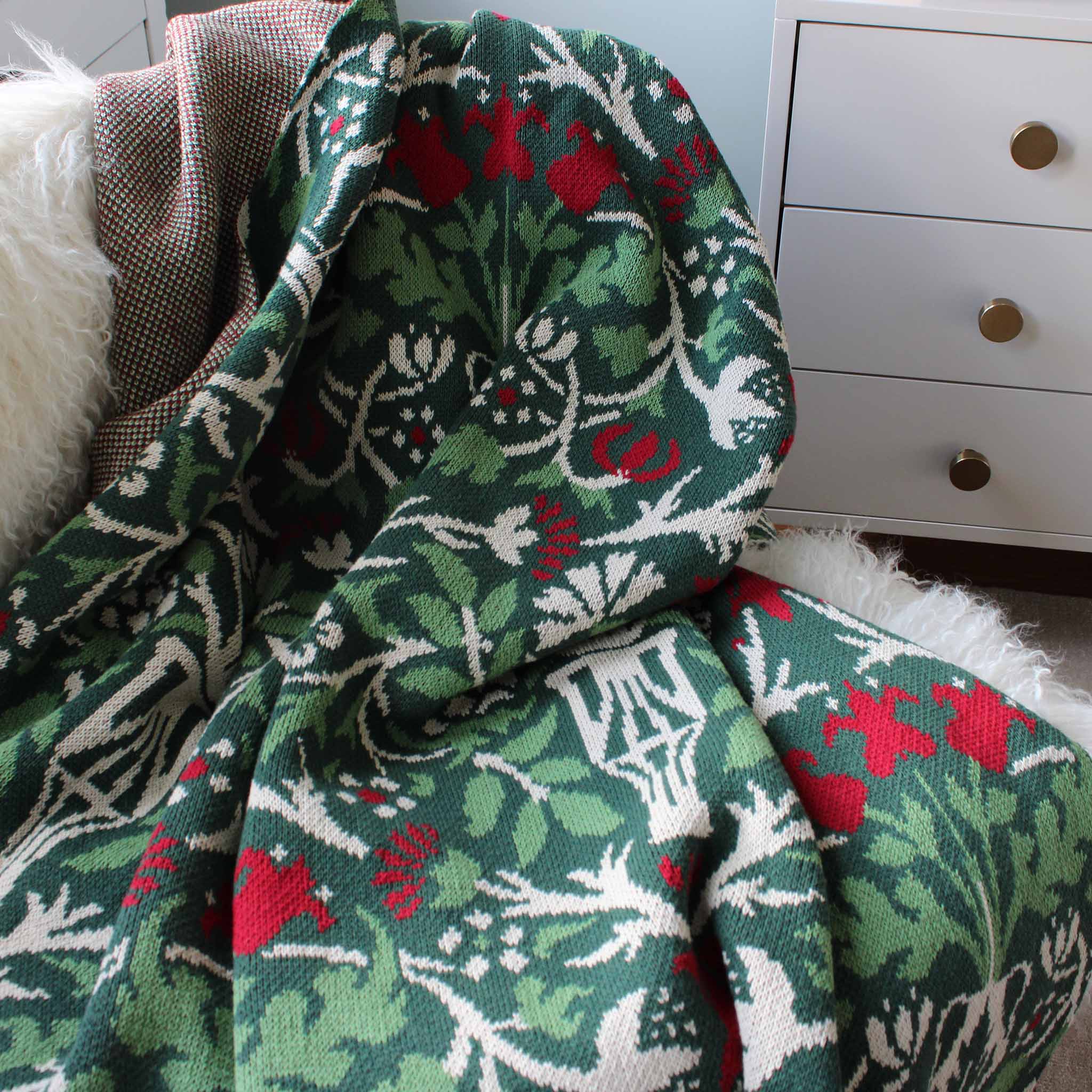 Cotton Sustainable Knit Throw | Winter Holiday Gift - Jardiniere by William Morris